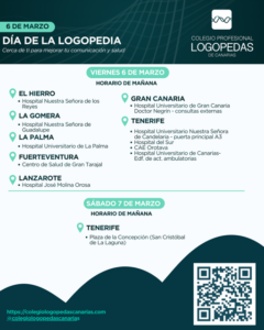 Habrá mesas informativas en centros sanitarios, el viernes 6, un acto central en La Laguna, el sábado 7, y se publicarán vídeos en redes sociales con testimonios de experiencias con la logopedia.